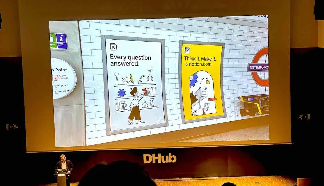 That evening, among the past cases like MoMa’s new visual identity, he spoke about the role of illustration in Notion’s brand. Not just the style choices, but the underlying philosophy: why they chose illustration at all, and how it helps Notion feel less like a tool and more like a place you’d want to stay a while. As he described it, illustration isn’t there to decorate. It’s there to signal and to express intent before a single feature is clicked.