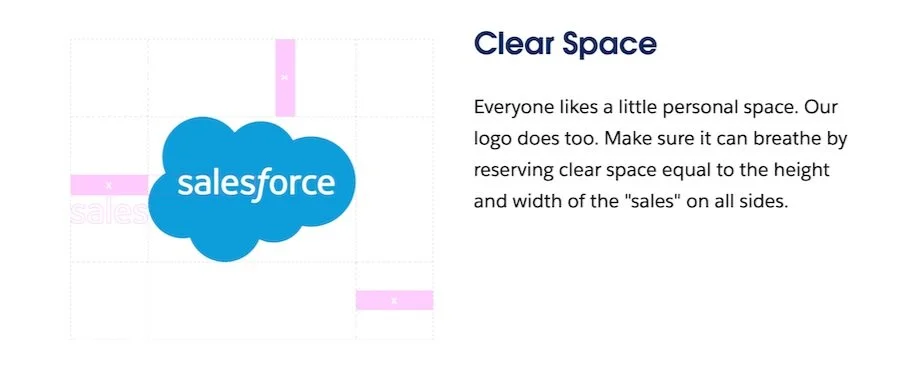 Here are typical examples from Spotify and Salesforce of a typical logo miseuse page and clear space rules of brand guidelines: